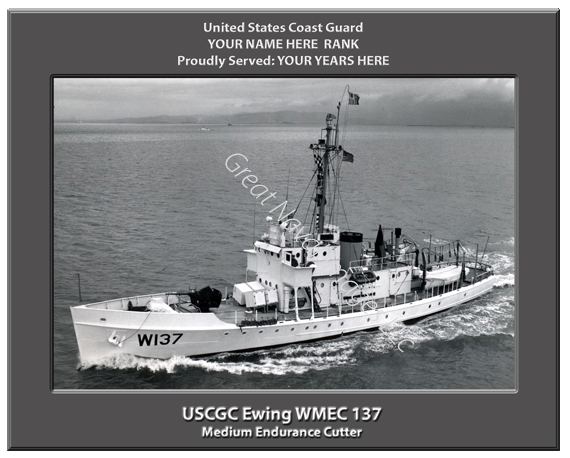 We PERSONALIZE your print of the USCGC Ewing WMEC 137 with your name, rank and years served and there is NO ADDITIONAL CHARGE for this option. After you place your order, you can simply email us or indicate in the notes section of your payment what you would like printed. For example:
