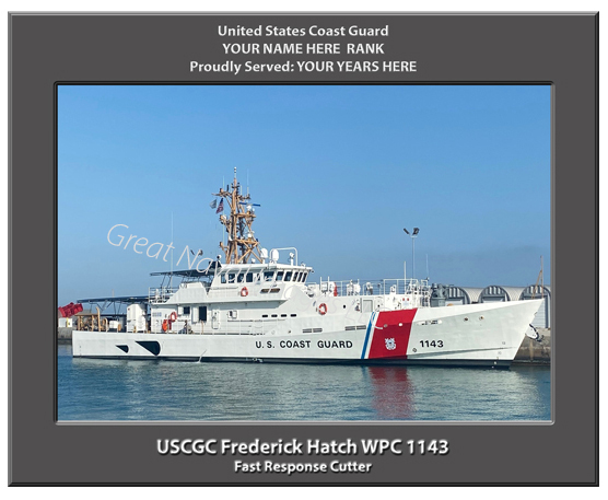 We PERSONALIZE your print of the USCGC Frederick Hatch WPC 1143 with your name, rank and years served and there is NO ADDITIONAL CHARGE for this option. For example: