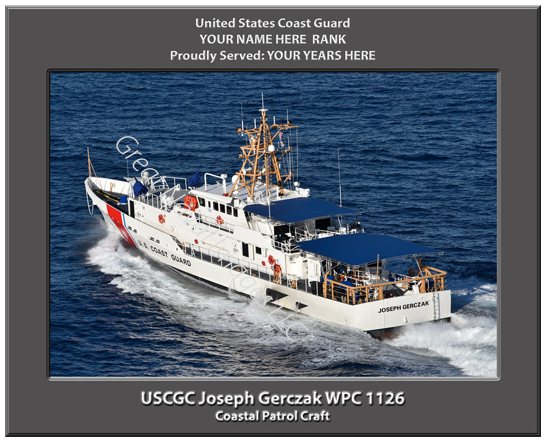 We PERSONALIZE your print of the USCGC Joseph Gerczak WPC 1126 with your name, rank and years served and there is NO ADDITIONAL CHARGE for this option. After you place your order, you can simply email us or indicate in the notes section of your payment what you would like printed. For example: