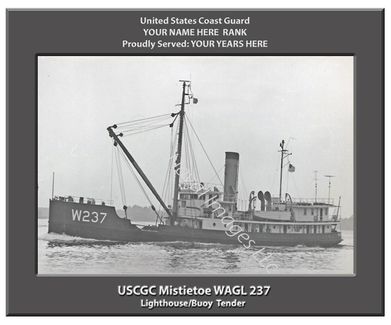 We PERSONALIZE your print of the USCGC Mistletoe WAGL 237 with your name, rank and years served and there is NO ADDITIONAL CHARGE for this option. For example:
