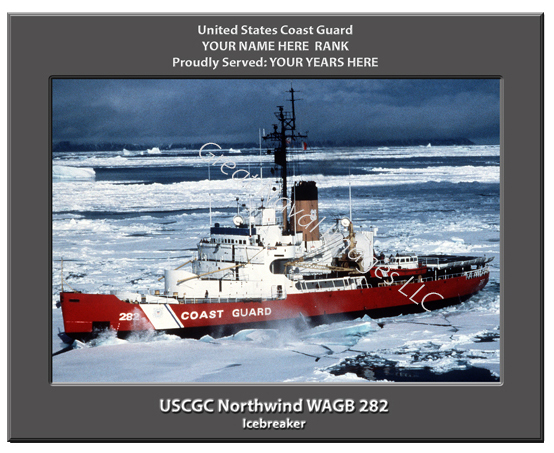 We PERSONALIZE your print of the USCGC Northwind WAGB 282 with your name, rank and years served and there is NO ADDITIONAL CHARGE for this option. After you place your order, you can simply email us or indicate in the notes section of your payment what you would like printed. For example:
