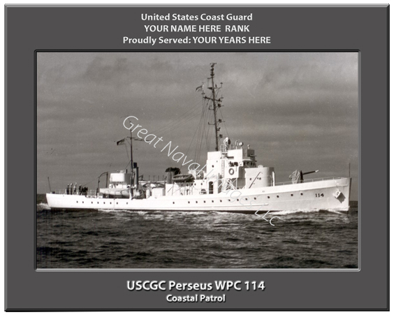 We PERSONALIZE your print of the USCGC Perseus WPC 114 with your name, rank and years served and there is NO ADDITIONAL CHARGE for this option. For example: