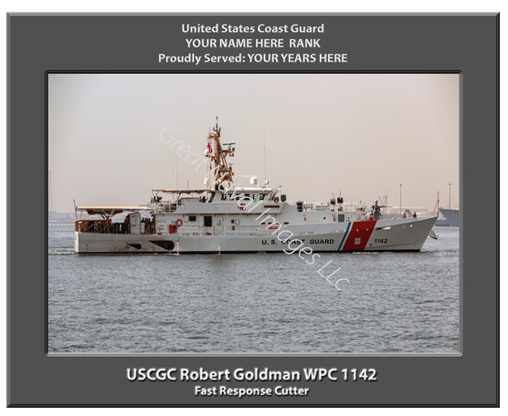 We PERSONALIZE your print of the USCGC Robert Goldman WPC 1142 with your name, rank and years served and there is NO ADDITIONAL CHARGE for this option. For example: