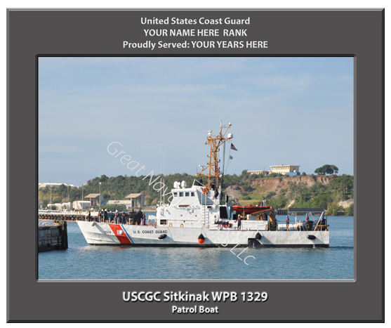 We PERSONALIZE your print of the USCGC Sitkinak WPB 1329 with your name, rank and years served and there is NO ADDITIONAL CHARGE for this option. For example: