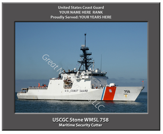 We PERSONALIZE your print of the USCGC Stone WMSL 758 with your name, rank and years served and there is NO ADDITIONAL CHARGE for this option. After you place your order, you can simply email us or indicate in the notes section of your payment what you would like printed. For example: