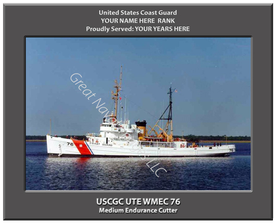 We PERSONALIZE your print of the USCGC UTE WMEC 623 with your name, rank and years served and there is NO ADDITIONAL CHARGE for this option. After you place your order, you can simply email us or indicate in the notes section of your payment what you would like printed. For example: