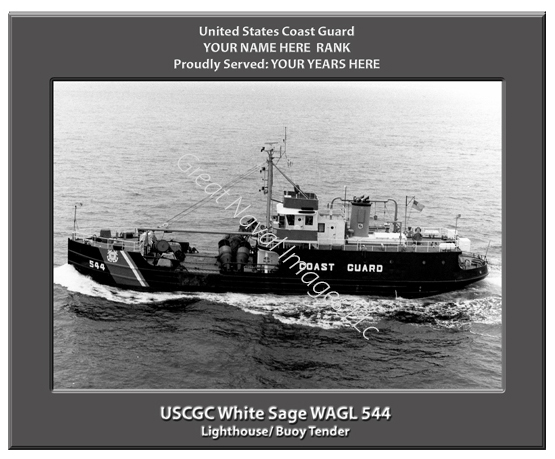 We PERSONALIZE your print of the USCGC White Sage WAGL 544 with your name, rank and years served and there is NO ADDITIONAL CHARGE for this option. For example:
