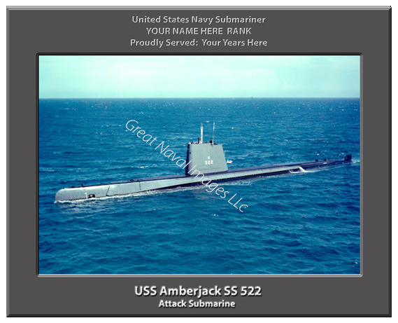 We PERSONALIZE your print of the USS Amberjack SS 522 with your name, rank and years served and there is NO ADDITIONAL CHARGE for this option. After you place your order, you can simply email us or indicate in the notes section of your payment what you would like printed. For example: