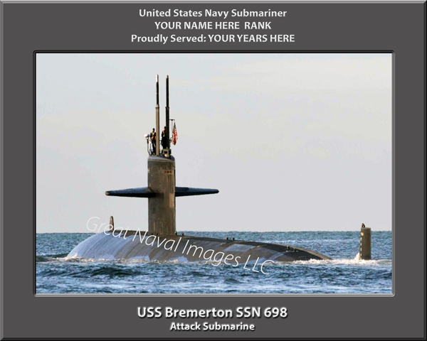 We PERSONALIZE your print of the USS Bremerton SSN 698 with your name, rank and years served and there is NO ADDITIONAL CHARGE for this option. After you place your order, you can simply email us or indicate in the notes section of your payment what you would like printed. For example: