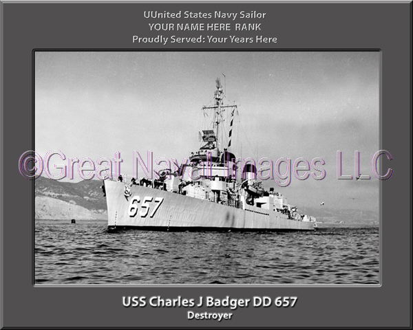 We PERSONALIZE your print of the USS Charles J Badger DD 657 with your name, rank and years served and there is NO ADDITIONAL CHARGE for this option. After you place your order you can simply email us or indicate in the notes section of your payment what you would like printed. For example: