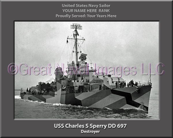 We PERSONALIZE your print of the USS Charles S Sperry DD 697 with your name, rank and years served and there is NO ADDITIONAL CHARGE for this option. After you place your order you can simply email us or indicate in the notes section of your payment what you would like printed. For example: