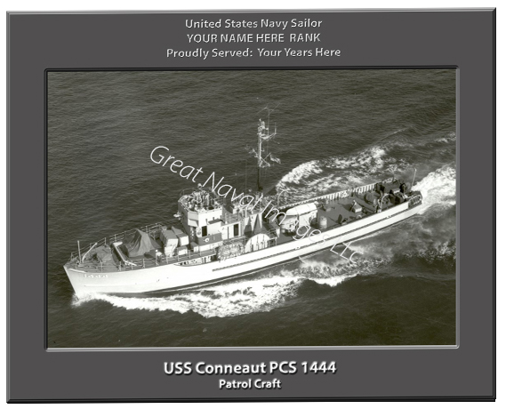 We PERSONALIZE your print of the USS Conneaut PCS 1444 with your name, rank and years served and there is NO ADDITIONAL CHARGE for this option. After you place your order, you can simply email us or indicate in the notes section of your payment what you would like printed. For example: