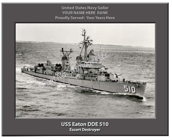 We PERSONALIZE your print of the USS Eaton DDE 510 with your name, rank and years served and there is NO ADDITIONAL CHARGE for this option. After you place your order you can simply email us or indicate in the notes section of your payment what you would like printed. For example: