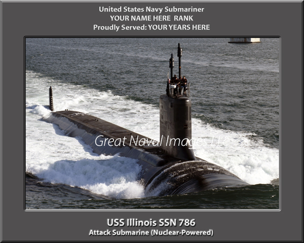 We PERSONALIZE your print of the USS Illinois SSN 786 with your name, rank and years served and there is NO ADDITIONAL CHARGE for this option. After you place your order, you can simply email us or indicate in the notes section of your payment what you would like printed. For example: