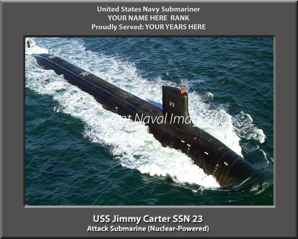 We PERSONALIZE your print of the USS Jimmy Carter SSN 23 with your name, rank and years served and there is NO ADDITIONAL CHARGE for this option. After you place your order, you can simply email us or indicate in the notes section of your payment what you would like printed. For example:
