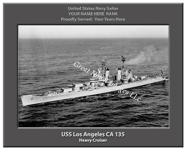 We can PERSONALIZE your print of the USS Los Angeles CA 135 with your name, rank and years served and there is NO ADDITIONAL CHARGE for this option. After you place your order, you can simply email us or indicate in the notes section of your payment what you would like printed. For example: