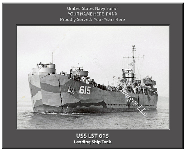We PERSONALIZE your print of the USS LST 615 with your name, rank and years served and there is NO ADDITIONAL CHARGE for this option. After you place your order, you can simply email us or indicate in the notes section of your payment what you would like printed. For example: