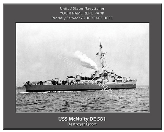 We PERSONALIZE your print of the USS McNulty DE 581 with your name, rank and years served and there is NO ADDITIONAL CHARGE for this option. For example: