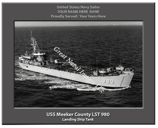 We PERSONALIZE your print of the USS Meeker County LST 980 with your name, rank and years served and there is NO ADDITIONAL CHARGE for this option. After you place your order, you can simply email us or indicate in the notes section of your payment what you would like printed. For example: