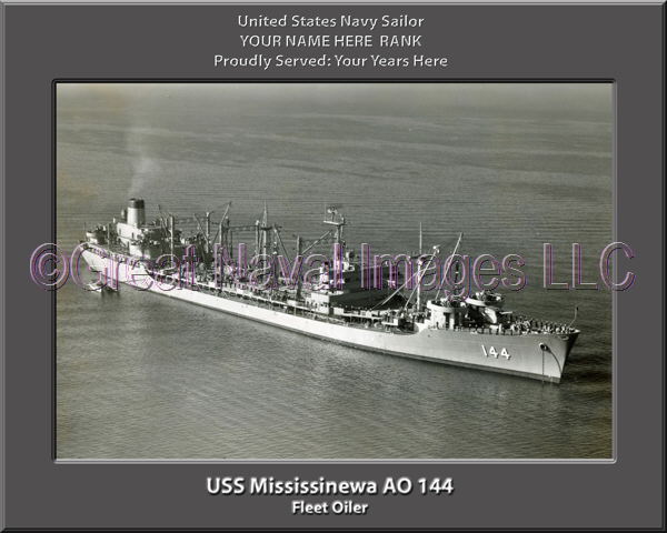 We can PERSONALIZE your print or the USS Mississinewa AO 144 with your name, rank and years served and there is no ADDITIONAL CHARGE for this option. After you place your order you can simply email us or indicate in the notes section of your payment what you would like printed. For example: