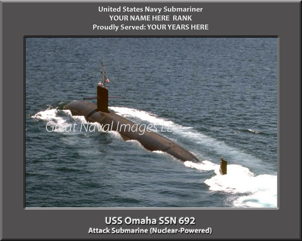 We PERSONALIZE your print of the USS Omaha SSN 692 with your name, rank and years served and there is NO ADDITIONAL CHARGE for this option. After you place your order, you can simply email us or indicate in the notes section of your payment what you would like printed. For example: