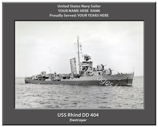 We PERSONALIZE your print of the USS Rhind DD 404 with your name, rank and years served and there is NO ADDITIONAL CHARGE for this option. After you place your order you can simply email us or indicate in the notes section of your payment what you would like printed. For example: