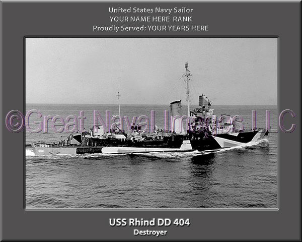 We PERSONALIZE your print of the USS Rhind DD 404 with your name, rank and years served and there is NO ADDITIONAL CHARGE for this option. After you place your order you can simply email us or indicate in the notes section of your payment what you would like printed. For example: