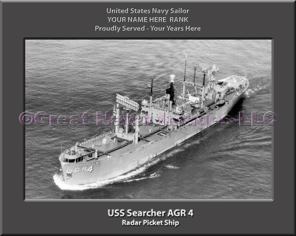 We can PERSONALIZE your print or the USS Searcher AGR 4 with your name, rank and years served and there is no ADDITIONAL CHARGE for this option. After you place your order you can simply email us or indicate in the notes section of your payment what you would like printed. For example: