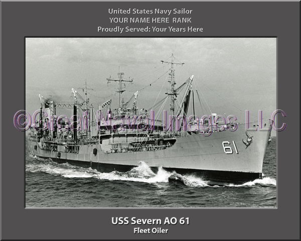We can PERSONALIZE your print or the USS Severn AO 61 with your name, rank and years served and there is no ADDITIONAL CHARGE for this option. After you place your order you can simply email us or indicate in the notes section of your payment what you would like printed. For example: