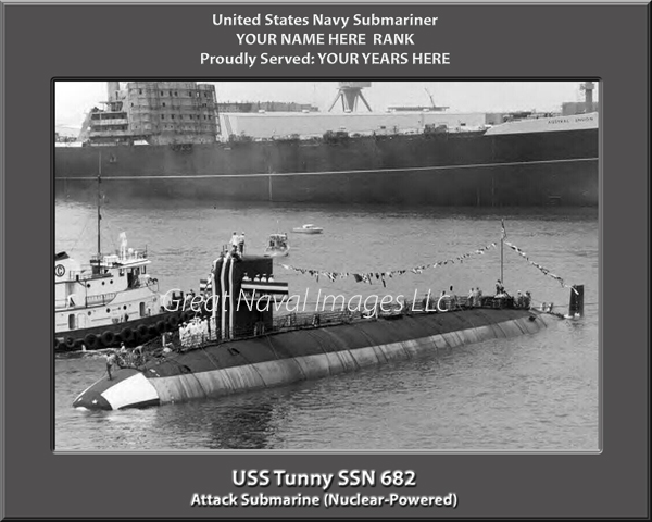 We PERSONALIZE your print of the USS Tunny SSN 682 with your name, rank and years served and there is NO ADDITIONAL CHARGE for this option. After you place your order, you can simply email us or indicate in the notes section of your payment what you would like printed. For example: