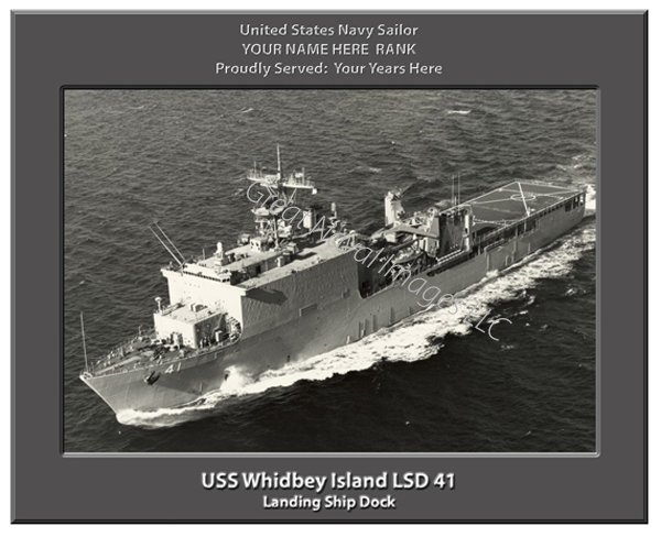 We PERSONALIZE your print of the USS Whidbey Island LSD 41 with your name, rank and years served and there is NO ADDITIONAL CHARGE for this option. After you place your order you can simply email us or indicate in the notes section of your payment what you would like printed. For example: